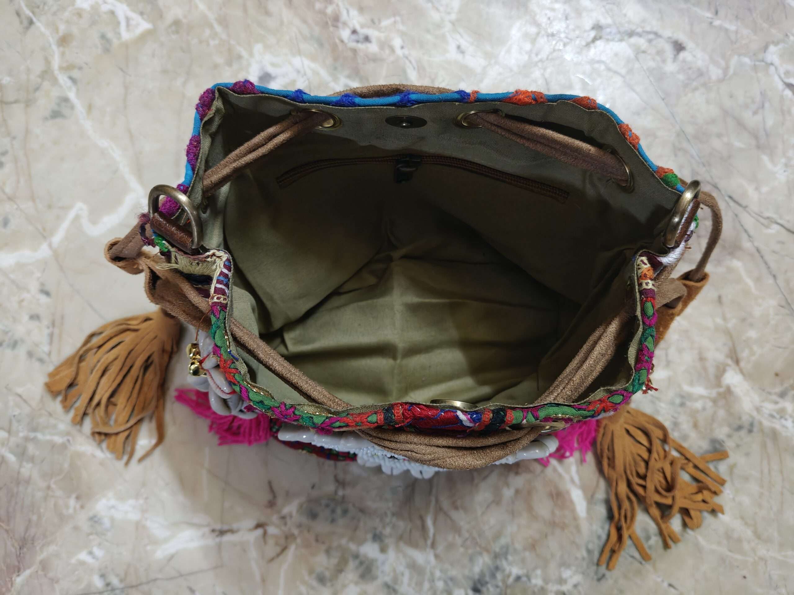 Our captivating mini Banjara potli is a true work of art. One-of-a-kind : No two are exactly alike, making it a truly special piece.